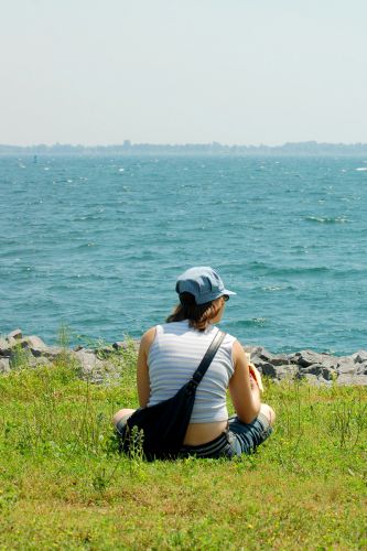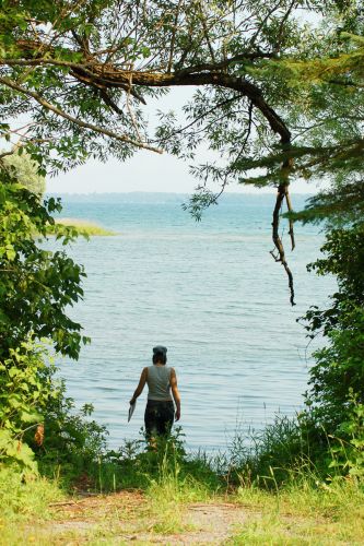 Kousek za Kingstonem v oblasti, kde ústí St. Lawrence River (což není nic jiného než řeka Sv. Vavřince) do jezera Ontaria, leží národní park "1000 ostrovů". Proč má park takový název, se mi zjistit nepodařilo, ale po chvilce zkoumání jsem přišel na to, že by to mohlo být proto, že tam asi bude nějakých tisíc ostrovů. Velkých i malých, hladkých i chlupatých, tlustých i placatých, jak je libo. U pár z nich je dokonce v provozu i přívoz pro osobní auta, mosty se tady nevedou. Tak jsme zaplatili 4 dolary a už frčeli na druhou stranu. Na ostrově, kromě toho, že tam obvykle taky nic moc není, nic nebylo. Teda nepočítáme-li spoustu zeleně, vodu všude okolo, bezpočet cedulí "private property" a občas i nějaké chatky nebo domky, ktere naplňují smysl oněch privátních proprd. Najít místo, kam byste mohli sejít k vodě, je téměř neřešitelný úkol. My jsme jednu díru mezi proprdama našli a mohli tak pozorovat nenažraného ptáka, který nedal rybám v jezeře chvíli klidu, místo aby si své jídlo poctivě vypěstoval na zahrádce, ukrad u souseda nebo alespoň koupil v instantní podobě, když už je tak líný, jak to dělám já (myslím tím to nakupování).