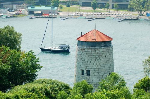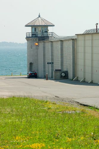 Pred nami usti reky Sv. Vavrince do jezera Ontario, za nami betonove zdi s ostnatym dratem. Romantika.