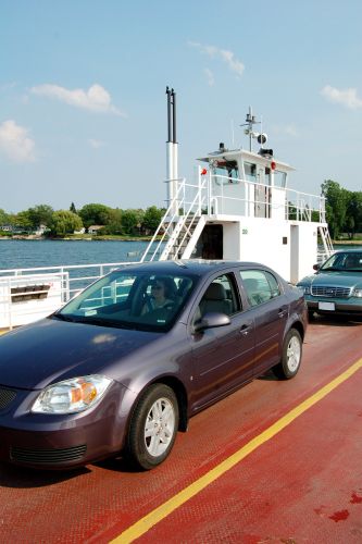 Zpět na pevninu nás převezlo jiné ferry, které bylo daleko sofistikovanější, protože se na něj vlezlo šest aut, narozdíl od onoho prvního přívozu, kam se s bídou nasoukaly tři auta velikosti tříkolky. Po osvobození ze zajetí ostrova jsme už pádili do Russelu, městečka vzdáleného 50 km od Ottawy, kde jsme měli zamluvenu noc v B&B. Po naházení věcí do pokoje jsme opět nastartovali našeho líného 2,2 litroveho Ecoteca a odfrčeli do Ottawy. Já ještě v Russelu nesměle navrhl, že foťák nechám doma, když bude stejně večer. V tom momentu jsem byl - ve vidině, že s ním nebudu opruzovat - pasován na rytíře hrdinu, jemuž odvaha crčí skrz oka ocelové košile a udatnost sama přetéká z plechových bot. Tohoto báječného pocitu jsem si ale moc neužil, neboť díky tomuto heroickému činu nemáme z Ottawy jediný obrázek a já si teď připadám jako debil.
