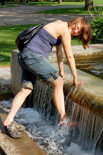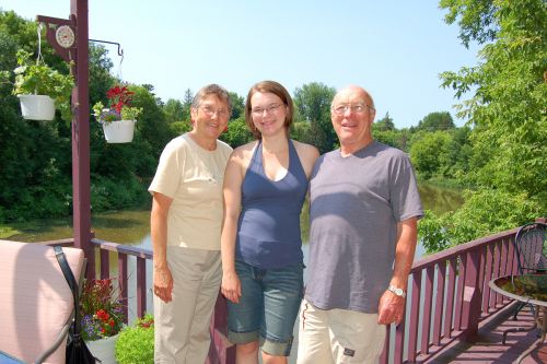 Montrealem jsme profrčeli jako blesk, kromě tuny aut před námi, za námi, vedle nás a pod i nad námi jsme neviděli vůbec nic. Delší zastávku s procházkou v parku jsme udělali až ve Třech řekách (město Trois-Riviéres). Tam jsme teprve zjistili, že se už nacházíme ve francouzsky mluvící oblasti, protože jsme si nebyli schopni ani přečíst, kde můžeme zaparkovat. Resp. nebyli jsme si schopni přečíst, že zrovna na tom místě, kde jsme zaparkovali, nemůžeme zaparkovat. Naše ne zcela dokonalá francouzština (např. já umím akorát říct, že nic neumím říct) měla za následek, že když jsme přišli zpět k autu, byla ulice z obou stran zablokována dopravními kužely, protože se asi chystala nějaká slavnost. Nicméně u jednoho z kuželů stál naštěstí klučina, který nám zátarasu uklidil, takže jsme přeci jen mohli z města tiše zmizet i bez rudé lilie vypálené na rameni. Asi jsou Frantíci na ty "zk. Toronťany" zvyklí.