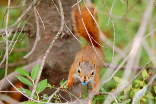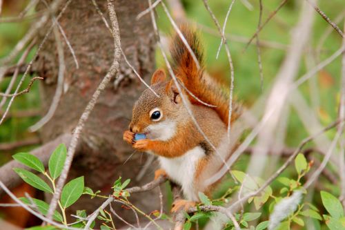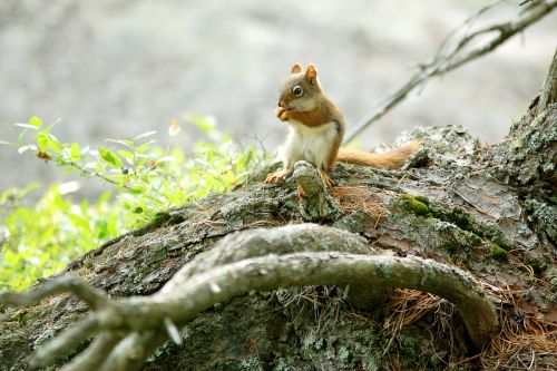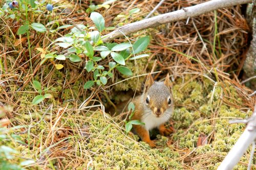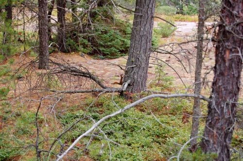 Na jedné kamenné planině jsme objevili roztomilé veveřáky - chipmonky. Resp. Áňa je objevila, jako vždycky, já jsem totiž slepý jak patrona a hluchá jak po šlápnutí na tu patronu. Dokonce se ke mě přiklonilo i štěstí, jelikož na oněch obrovských šutrech rostly i borůvky. To byla má jediná záchrana, neboť třídní nepřítel byl rázem umlčen sběrem lesních plodů, takže jsem se beztrestně mohl ujmout honění veverek s foťákem. Aniž bych musel poslouchat, proč ten potomý krám nevyhodím, co na tom jako vidím, a že se mnou už příště nikam nejde. Oh, jaký byl v tom lese boží klid.
