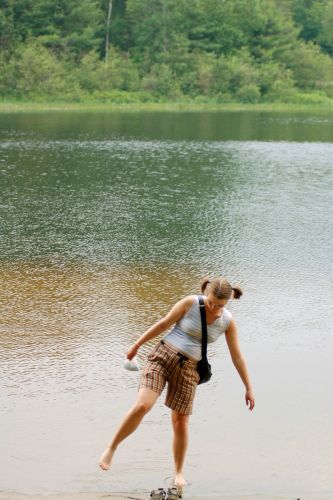 Když už oba chipmonci zdrhli a borůvky na šutrech došly, pokračovali jsme směrem k jezeru. Tam jsme vyměnili vrstvu repelentu na kůži za vrstvu bordelu z jezera. Nažloutlá voda nevěstila nic moc dobrého, nicméně nejspíš šlo pouze o zabarvení nějakými černými řasami, které se pod hladinou rozlézaly všude možně a které bych ihned spálil. Jenom kdybych měl sirky. Jak rychle jsme do vody vlezli, tak rychle jsme z ní zase vylezli, protože se ozvaly první hromy a blesky. I sbalili jsme svých nula švestek, protože jsme už žádné neměli a spěchali k autu. A spěchali do Toronta. Domů. Do Podolí. Do lékarny. Doprdele, to je mi smutno.