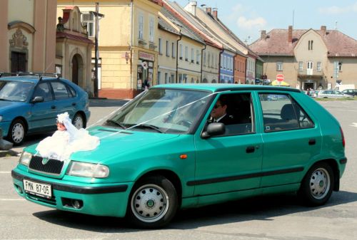 Jejda, hodina pokročila, ženich se sape na podvazek