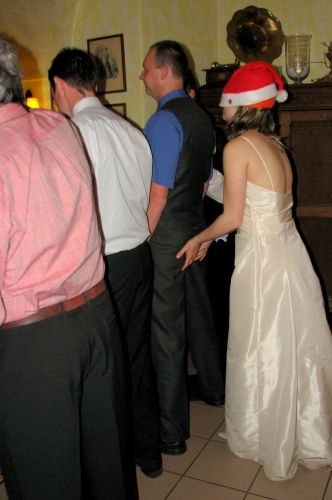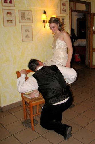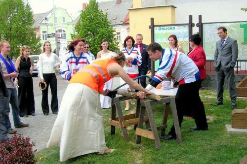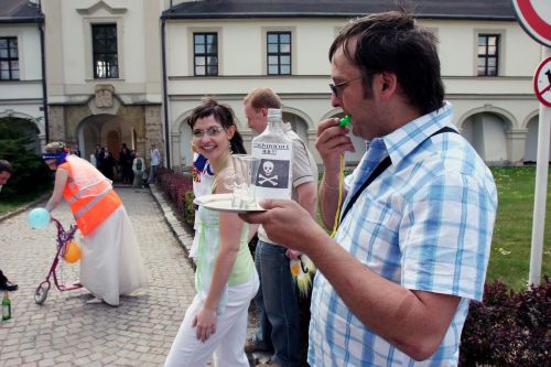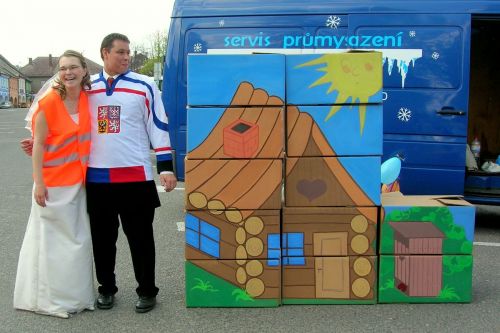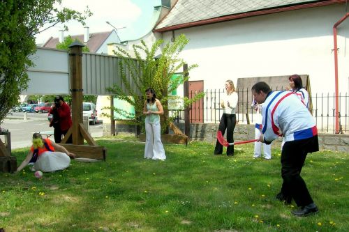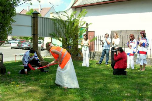 Po obřadě už na nás čekali moji milí spolužáci ze ZŠ, kteří se snažili ženicha zbavit důstojnosti seč to jen šlo. Abychom mohli začít doopravdický život, museli jsme dokázat naši spolupráci - postavili jsme dům, zasadili strom a zahráli si hokej. Po delší době se nám podařilo pokořit dvojmužnou pilou dřevěnou kládu a během hokejového klání nevěsta ženicha doslova znemožnila, když při nájezdech na bránu skórovala třemi ze tří ran, zatímco ženich - jakožto webmaster hcwerk.cz - potřeboval ran 10! Ostuda!